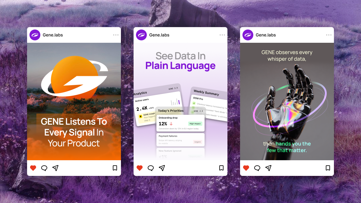 GENE is an AI insight layer for product teams that turns scattered product data into a few clear priorities. It quietly reads your analytics, user feedback, and support tickets, then surfaces what matters most in plain language, so your team always knows where to start. Instead of dashboards full of noise, GENE gives you focused, human‑readable guidance that keeps decisions calm, confident, and under control.